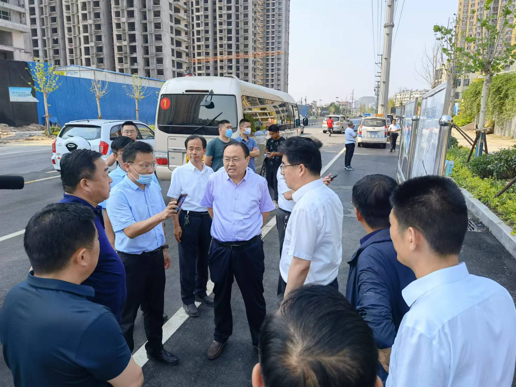 聂元科一行深入康庄路提升改造工程施工一线,检查督导工程建设情况,通过实地查看、听取汇报等方式,全面了解项目施工进度、抢工措施及推进过程中存在的困难和问题,并对下步工程施工提出了具体要求。