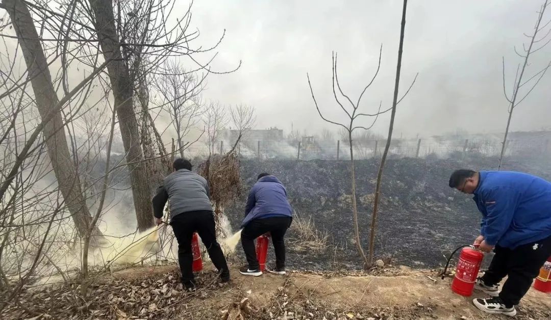 在大家的共同努力下,经过一番紧张而有序的灭火行动后,浓烟变小,火势得到控制,消防队的消防官兵也及时赶到,历时2个小时,终于将这场火情扑灭,因发现及时,扑救迅速,保住了附近树林的树苗,火灾没有造成重大的财产损失。