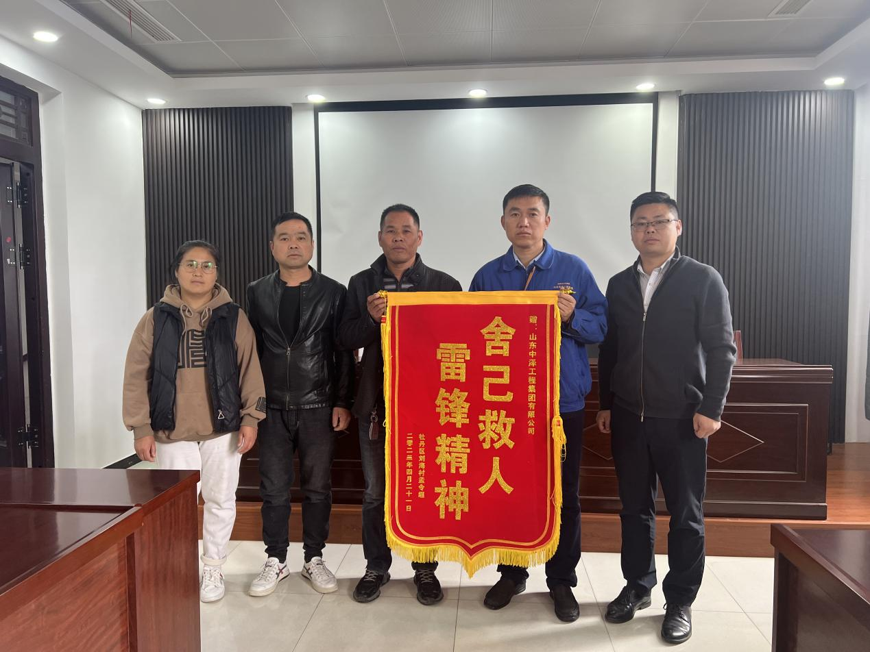 4月24日,牡丹区刘海村村民孟令超带领家人,将一面印有“舍己救人,雷锋精神”的锦旗送到天行在线注册。对公司闫乃品、陈兆飞和周怀滨舍己救人的行为表示感谢。