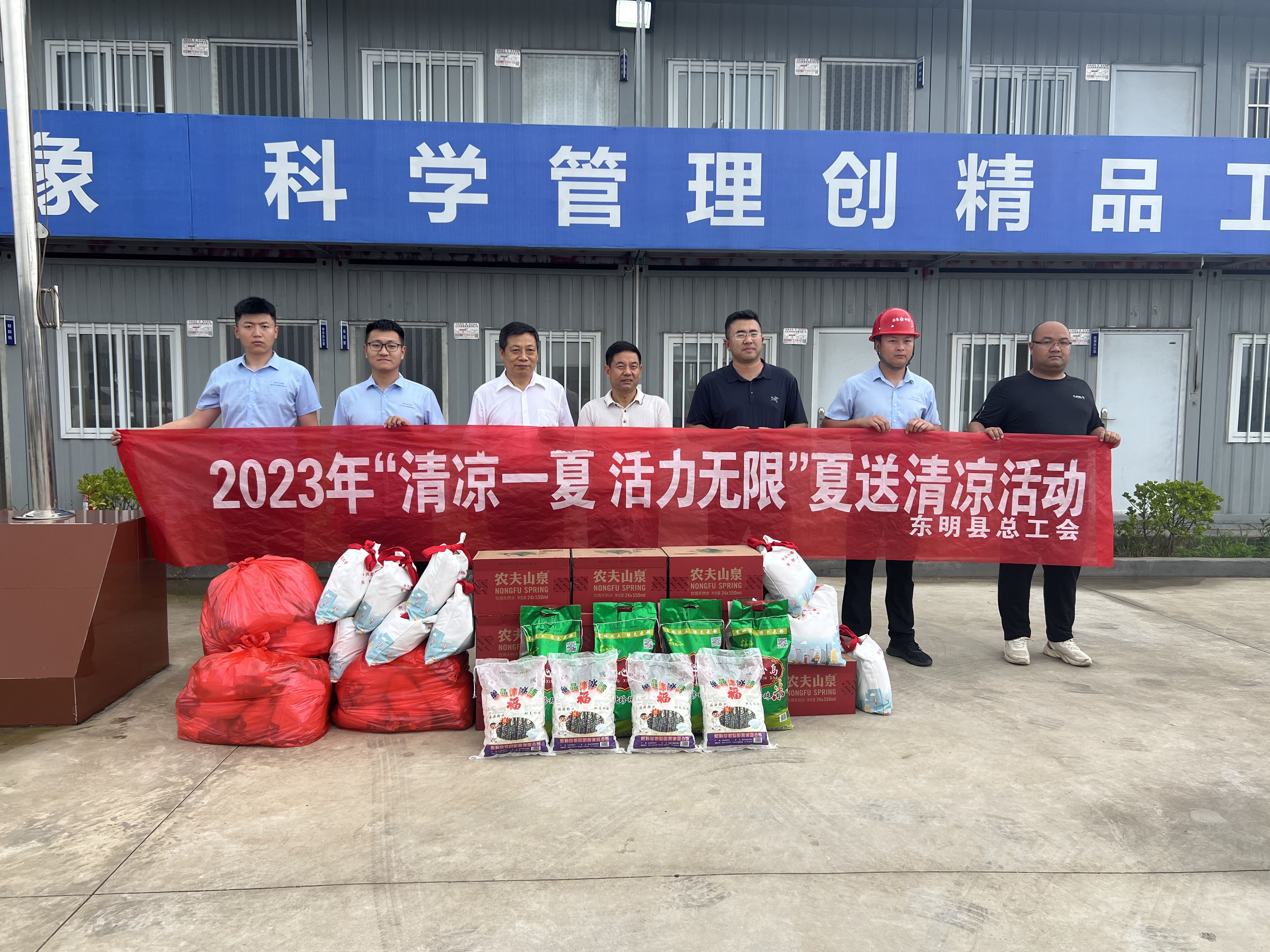连日来,晴热高温的天气给现场施工带来挑战。7月13日,东明县总工会副主席张运航一行深入东明县医药产业园项目开展高温慰问活动,为高温一线工作者“送清凉”。