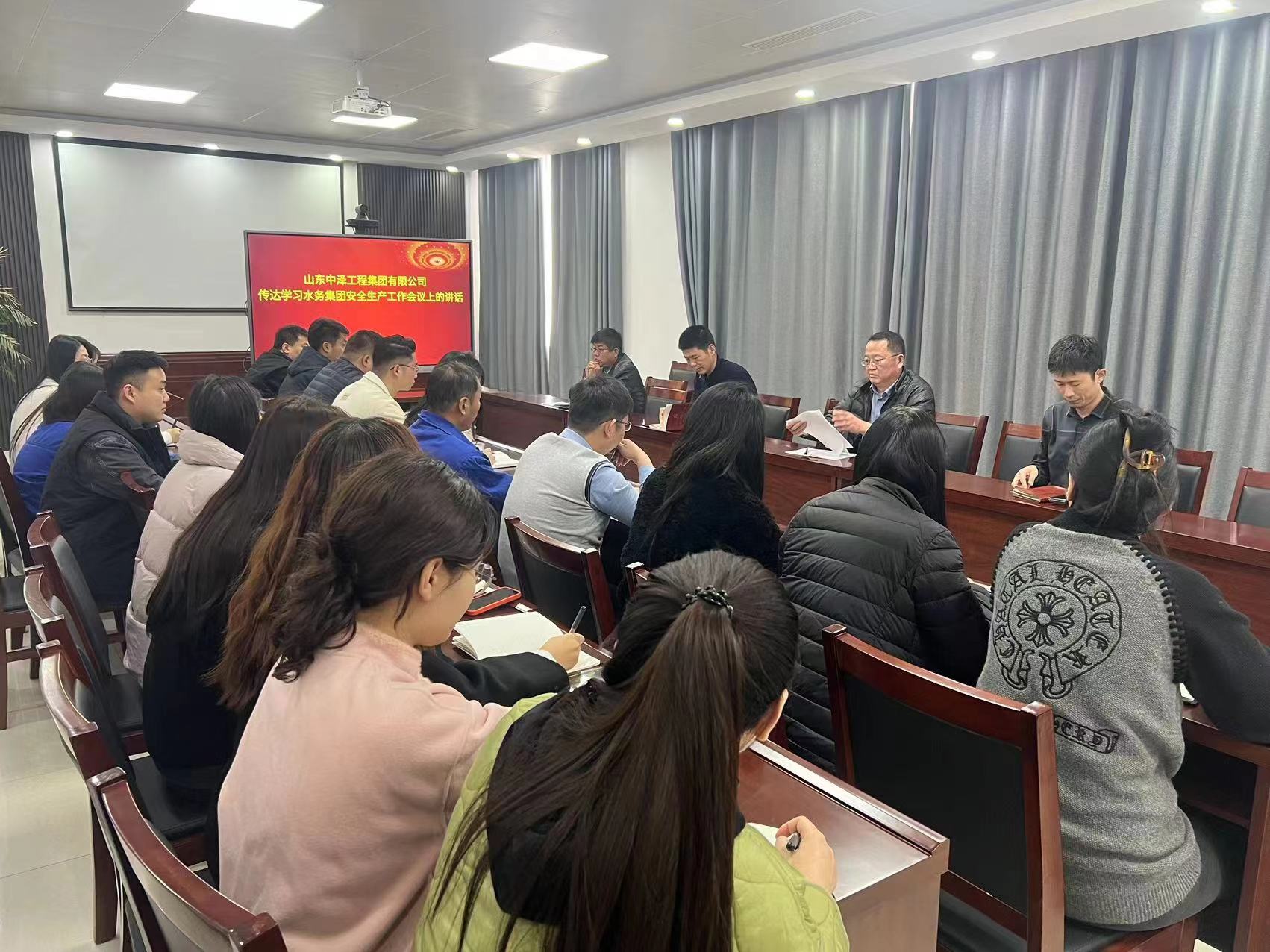11月22日,山东中泽工程集团召开安全生产工作会议,公司董事长白兴磊主持,全体员工参加。