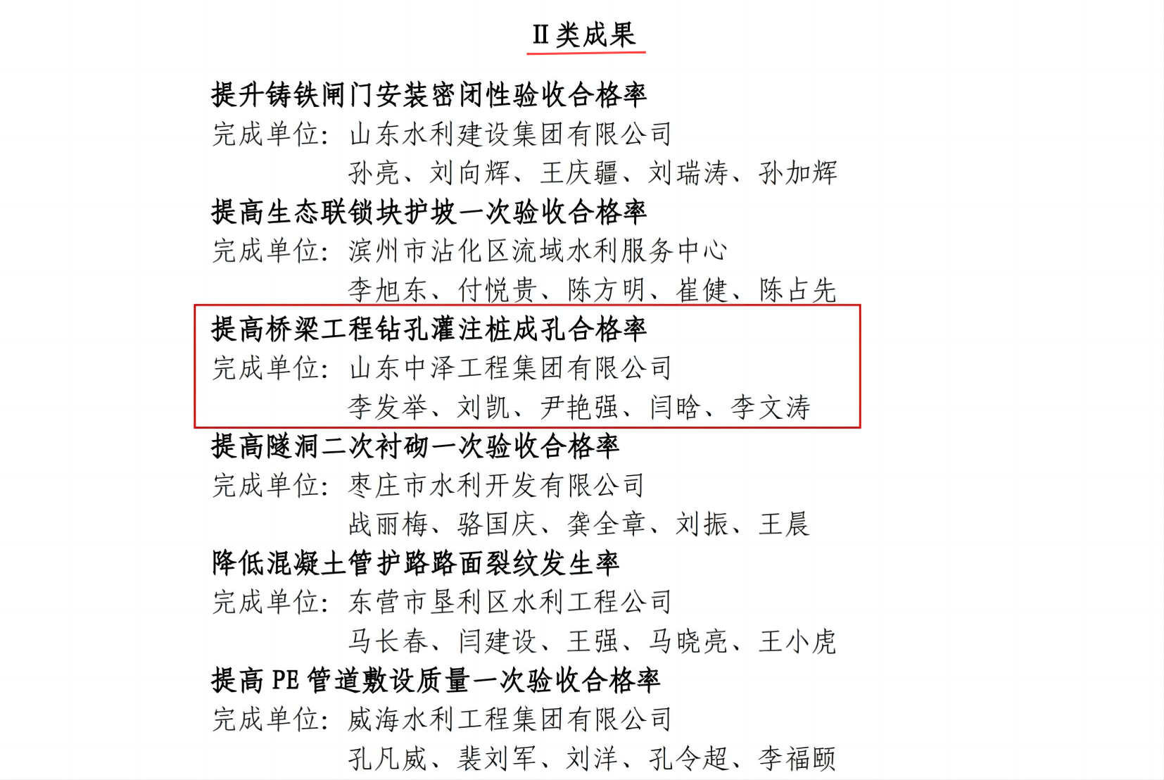 近日,山东省水利厅印发《通知》,公布2023年度全省重点水利工程建设“争进度、赛质量,比担当、创精品”创新创优劳动竞赛获奖名单,山东中泽工程集团荣获1项文明工地奖、2项QC小组成果奖、1项优秀组织个人奖。