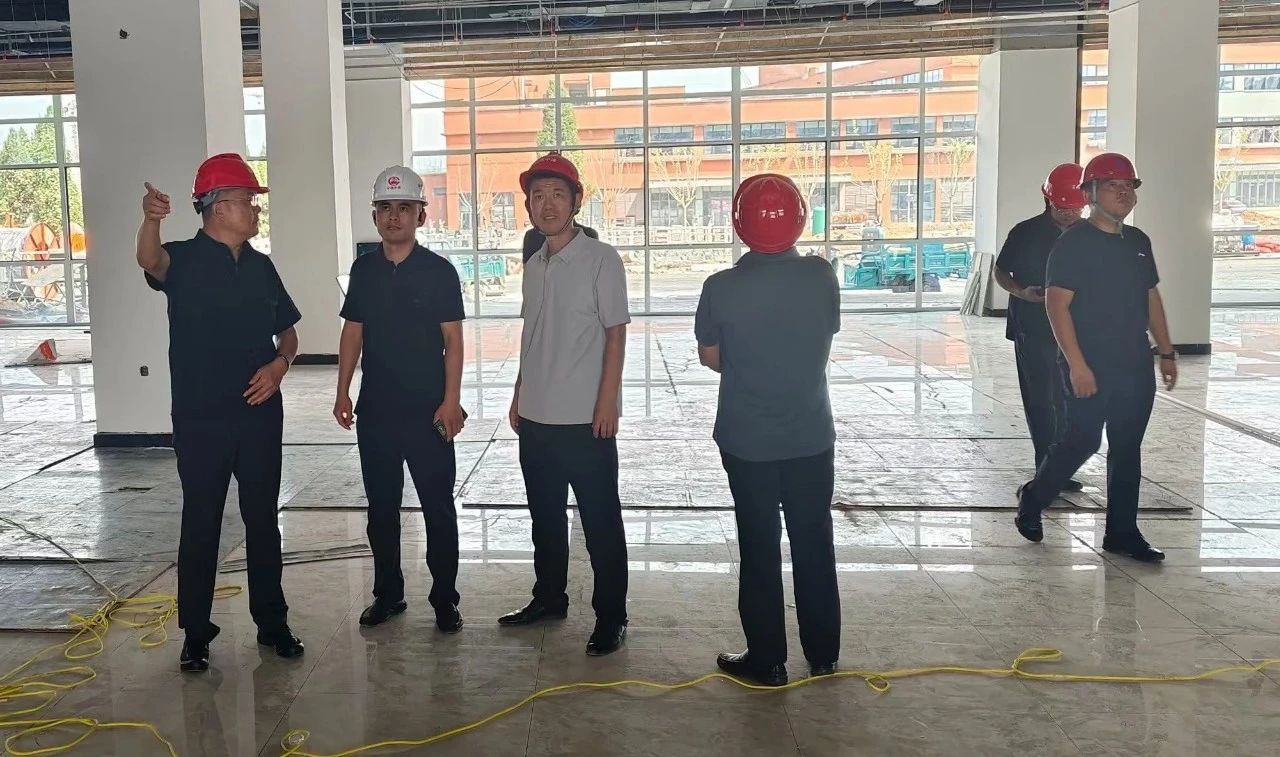 王海涛一行深入综合楼、活动中心、宿舍、室外配套、园林绿化、暖通安装等重要单体及关键施工环节,认真查看工程进度、材料供应、劳动力配置、外观质量等具体工作落实情况,对部分作业面施工力量不足、各工种衔接不够紧密、建筑垃圾清运不及时等问题进行现场协调解决。