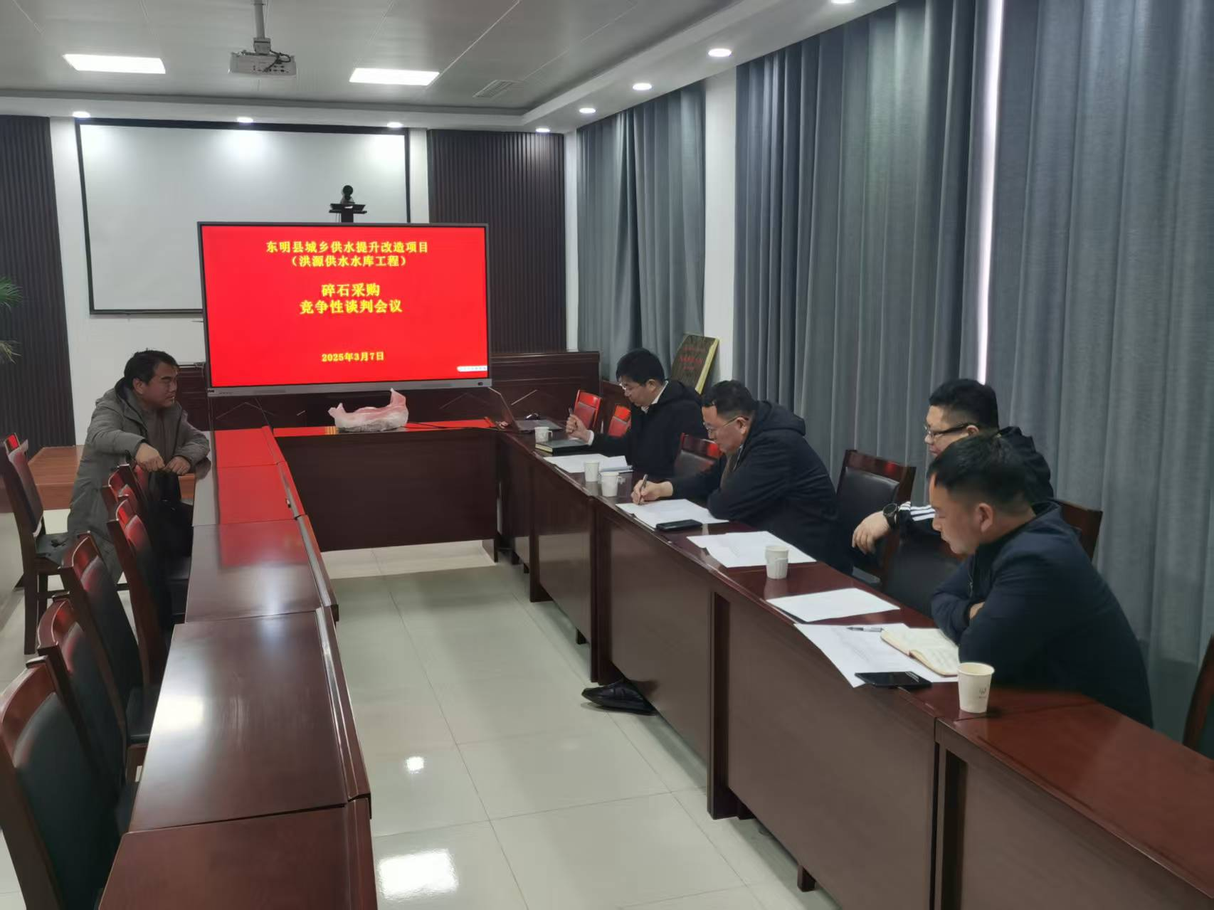 2025年3月7日上午9:00天行在线注册召开了东明县城乡供水提升改造项目(洪源供水水库工程)砂石料采购竞争性谈判会议。